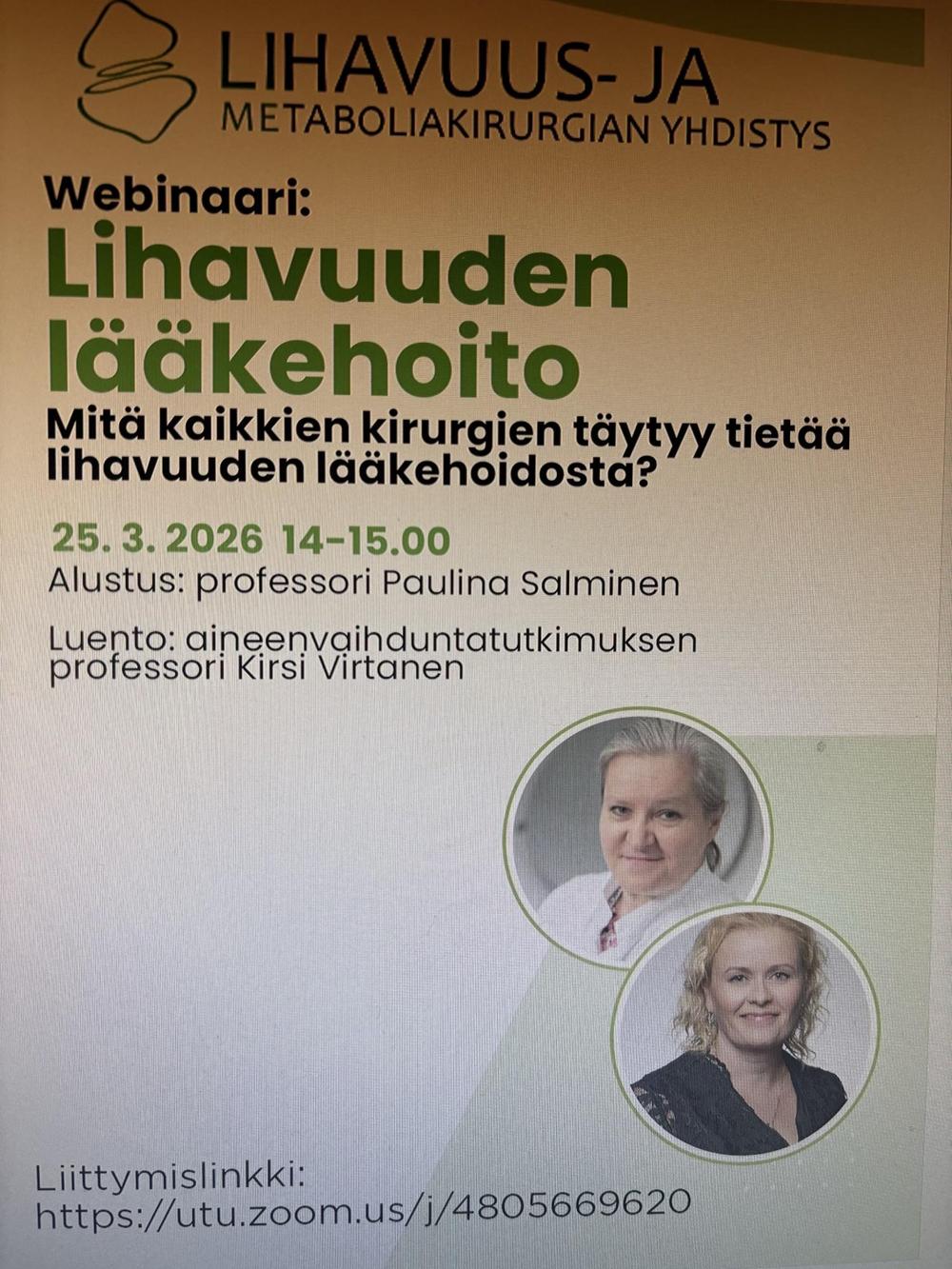 Lihavuus- ja Metaboliakirurgian webinaari: Lihavuuden lääkehoito
